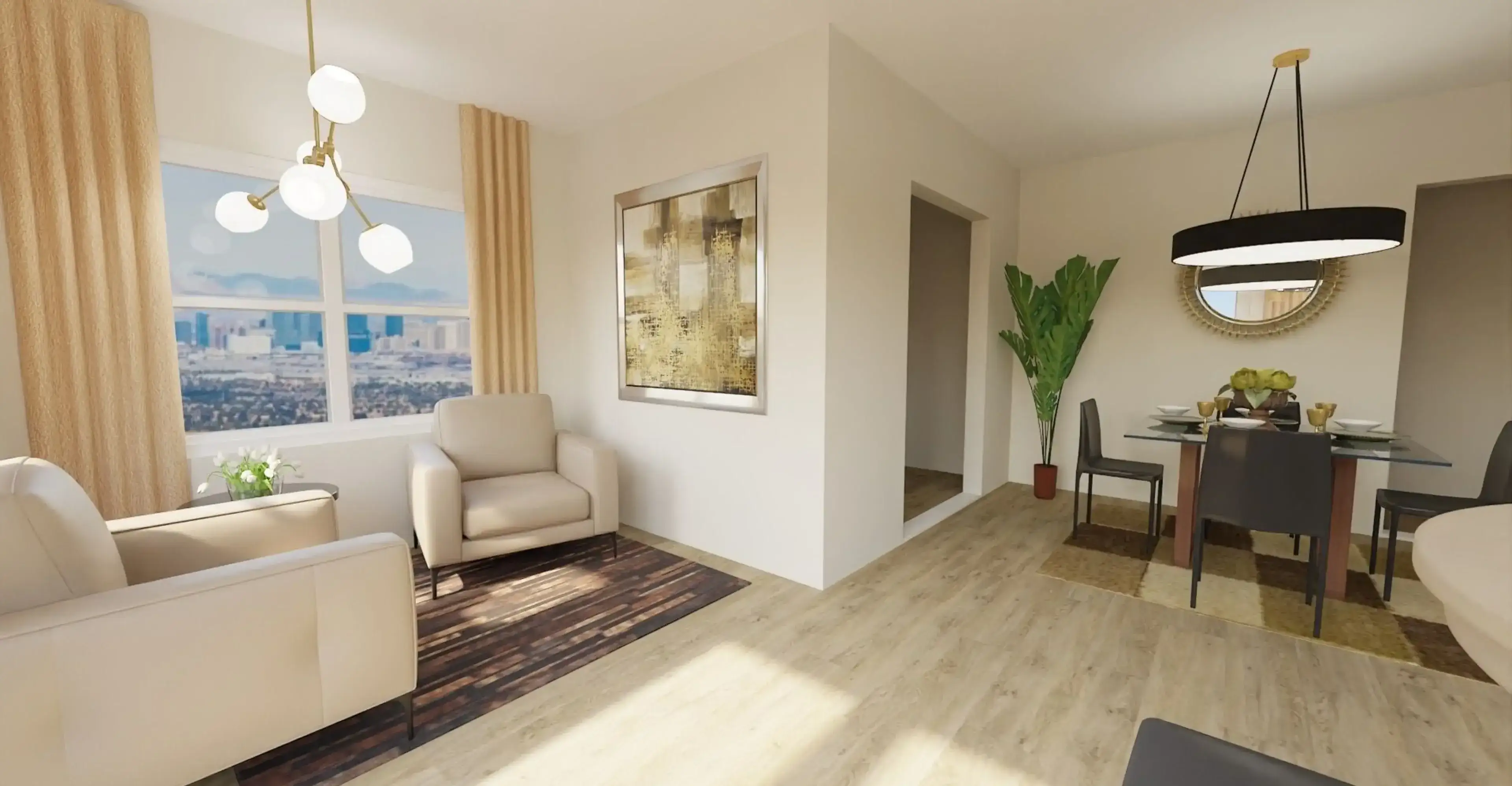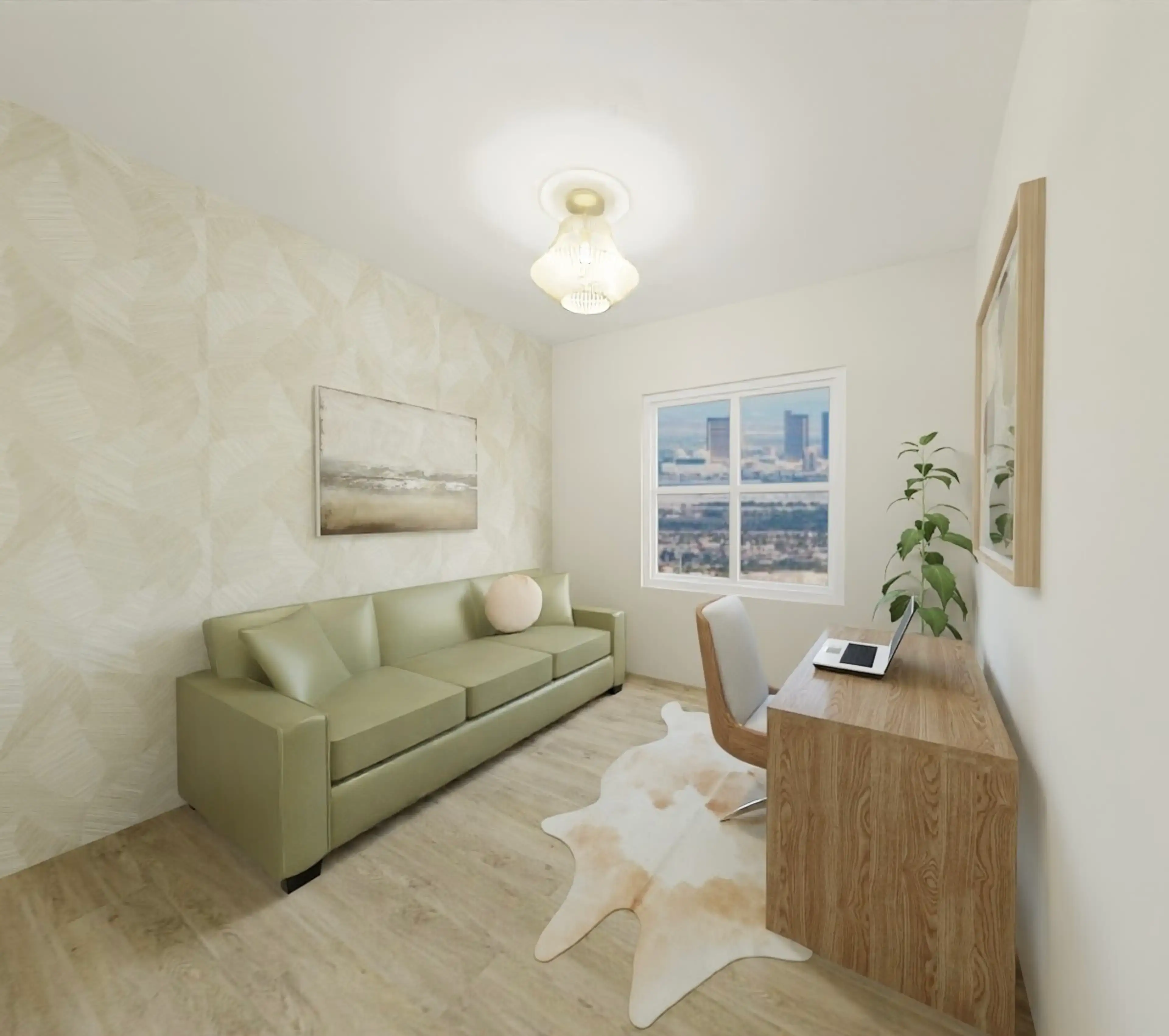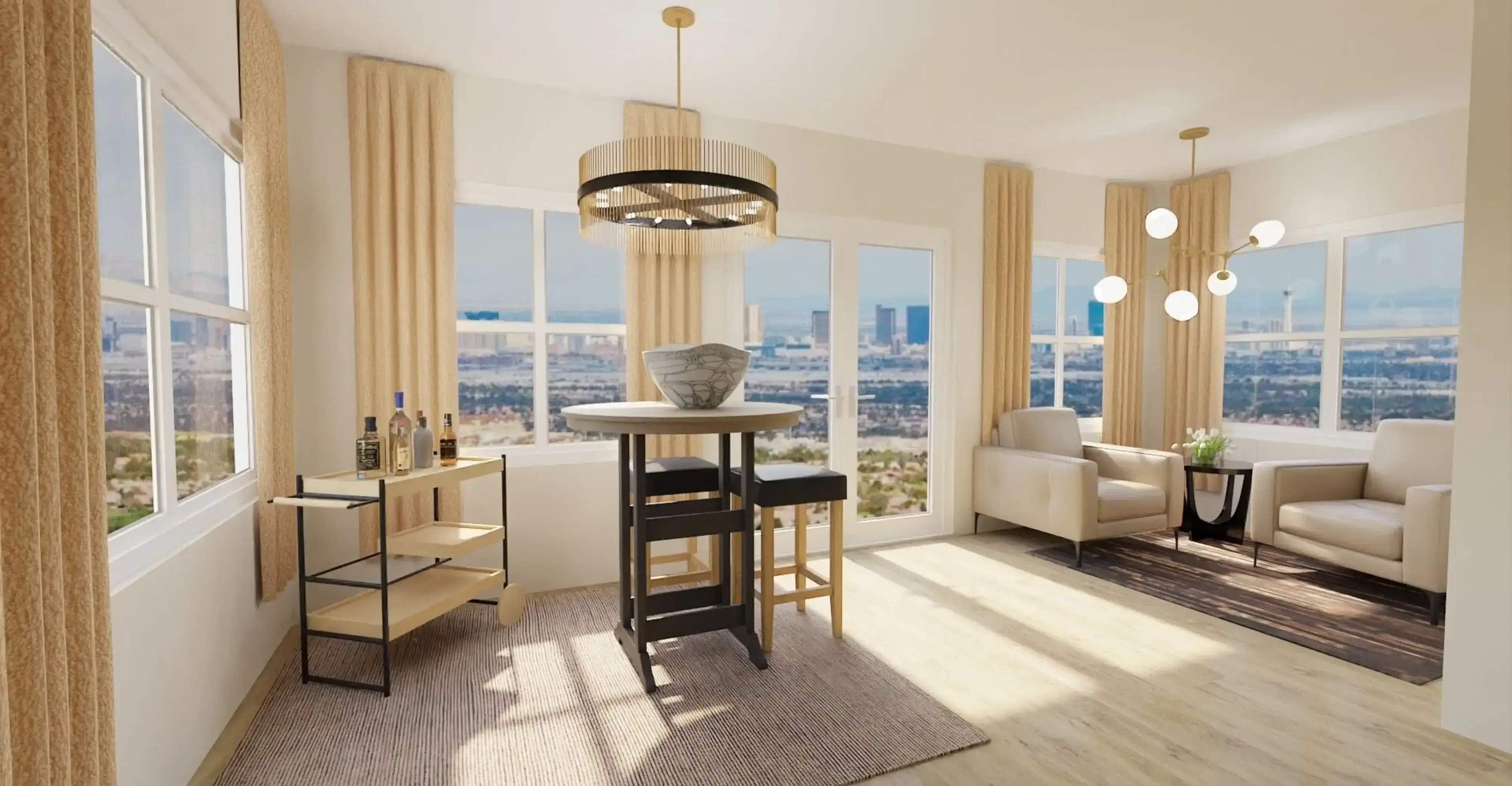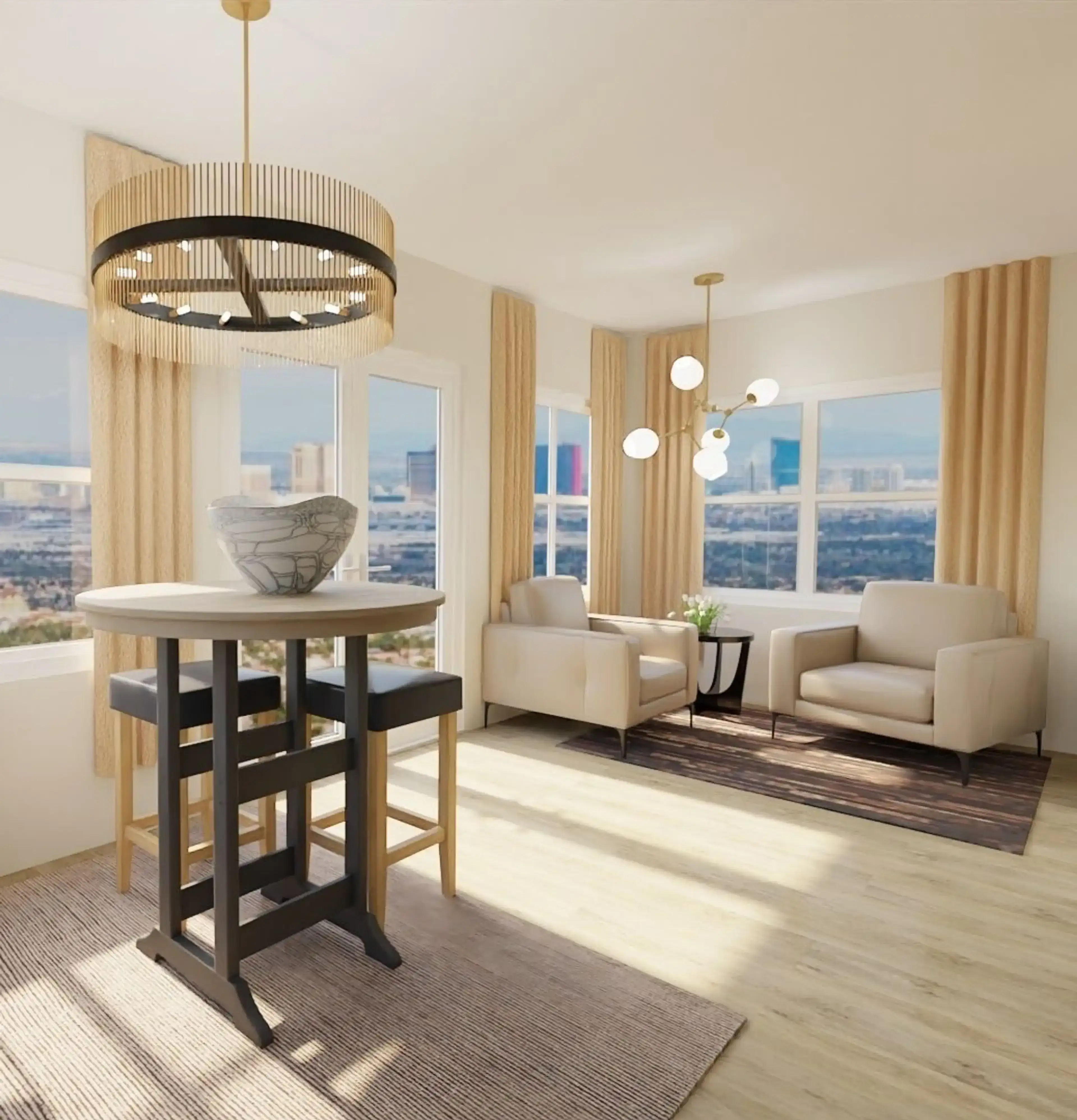 This is a Hall of Fame studio winning project. It is a conceptual full design project for a condo in Henderson, Nevada. With the client's choice of a green color palette, I focused on the full space planning, product selection, and material finishes.